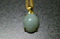 N-39 糸魚川産の翡翠原石で加工しました ペンライトによる透過がある綺麗な翡翠です トップのサイズが約 14mm チェーンの長さがアジャスター抜きで約 50cm 色はゴールドです